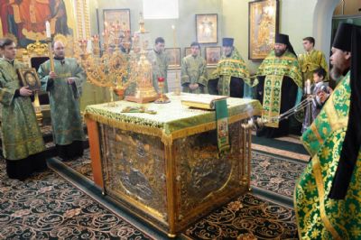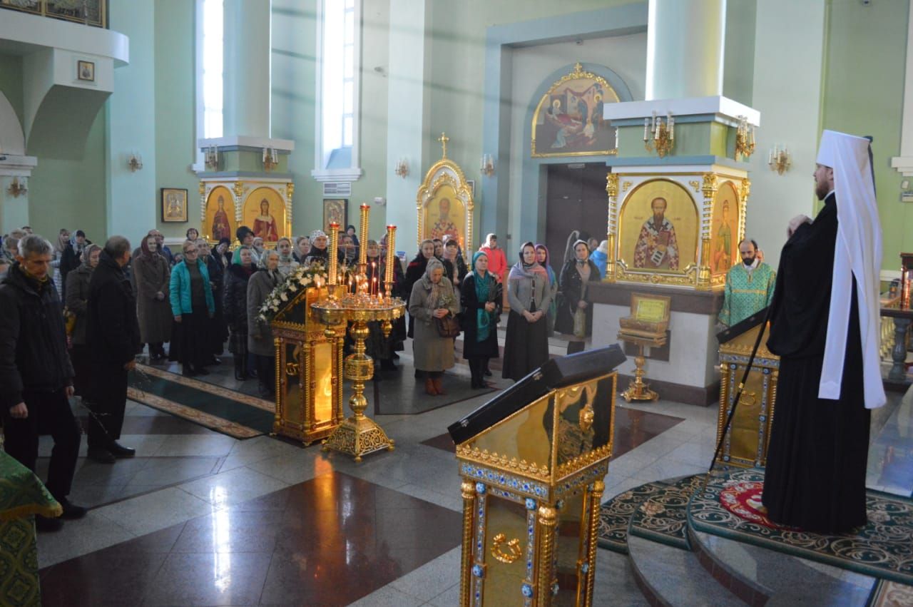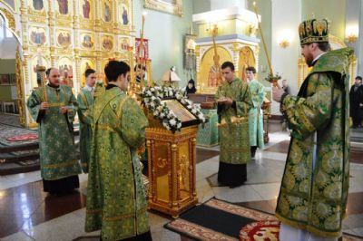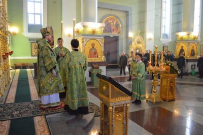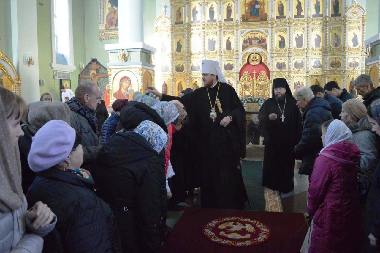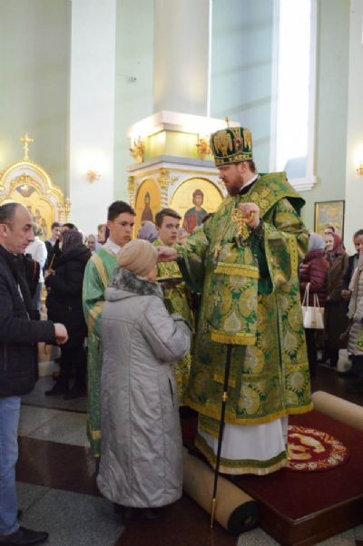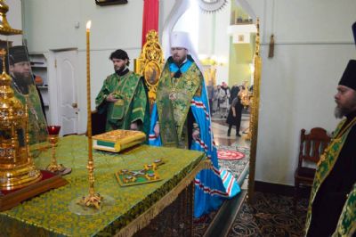 Его Высокопреосвященству сослужили: ключарь собора иеромонах Иоанн (Костин), игумен Антоний (Каменчук), игумен Тихон (Иршенко), протоиерей Игорь Шевчук, иерей Владимир Плотников.
