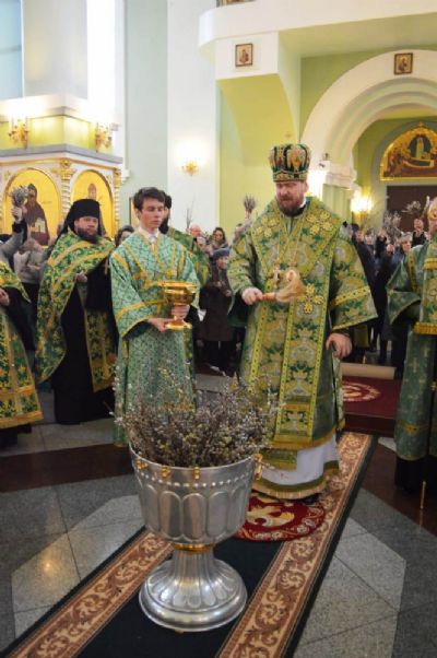 После чтения Святого Евангелия владыка Владимир совершил чин освящения вербных ветвей (ваий) и помазание верующих освященным елеем.