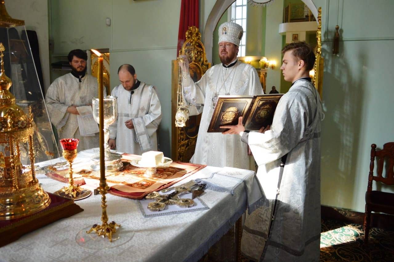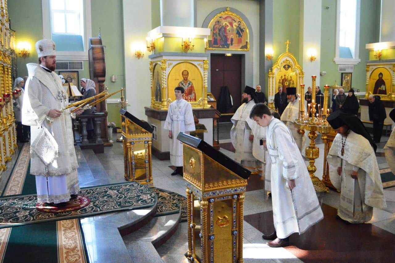 В Лазареву субботу митрополит Владимир совершил литургию в Покровском соборе