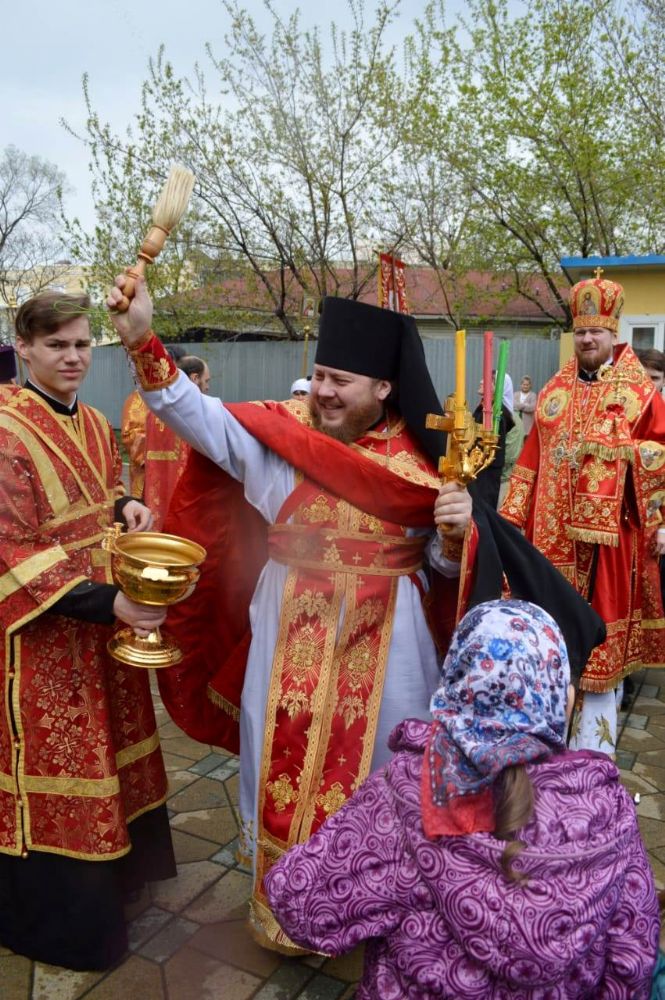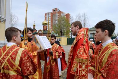 По заамвонной молитве владыка Владимир возглавил Пасхальный крестный ход вокруг Покровского собора.