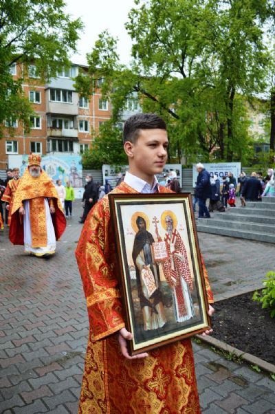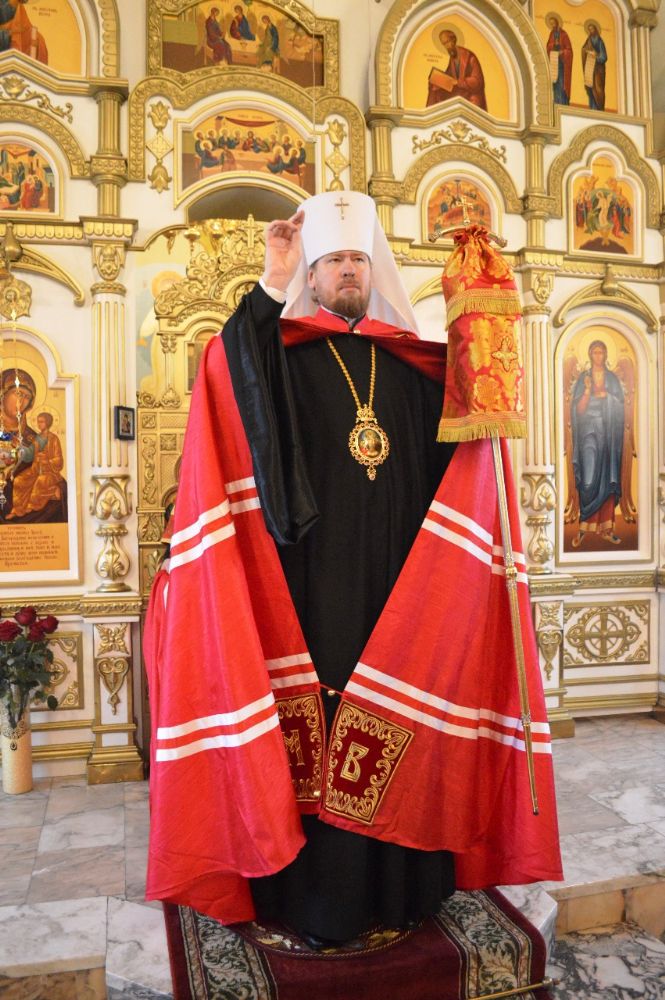 Поблагодарив за поздравление, владыка Владимир произнес проповедь: «Вся жизнь святых учителей Словенских Мефодия и Кирилла была свидетельством о Христе. Свидетельством тем народам, которые, по слову Божию, «находились во тьме и сени смертной». Мы сегодня прославляем двух братьев, родившихся в семье придворного офицера, получивших прекрасное образование. Они могли бы посвятить себя воинской службе или делу государственного служения, могли бы заниматься наукой и достичь определенных успехов в творчестве. Но они оставили все это для того, чтобы посвятить себя служению Богу и направить все свои силы на то, чтобы пойти к народам славянским, которые еще находились в язычестве, и даровать им возможность понимать Слово Божие, даровать им возможность молиться на понятном языке. Святой Константин, будущий Кирилл в монашеском постриге, оставляет этот мир после того, как определенные годы были посвящены получению образования, нахождению на дипломатической службе за рубежом. Его не прельщает ни будущая воинская карьера, ни дипломатическая служба. Он уходит на гору Олимп, где подвизается подвигом добрым и со временем становится архиереем Святой Церкви. Вместе со своим братом Мефодием, придя по приглашению болгарского князя Бориса в славянские земли, из разрозненных звуков и букв составить азбуку, чтобы впоследствие, переведя Слово Божие на этот язык, даровать многим и многим славянским народам возможность понимания Слова Божия, чтения Библии, которая до этого была доступна лишь на латинском и греческом языках. Мы знаем, что путь святых равноапостольных Мефодия и Кирилла был тернистым и сложным. Хотя они пришли в славянские земли по приглашению князя Бориса, их миссия столкнулась с сопротивлением немецких князей, которые стремились установить в этих землях свои порядки. Принести туда и передать местным народам свои обычаи. Поэтому возникло своего рода противостояние, которое привело к тому, что в рассвете лет, когда еще любой человек является полным сил, святой равноапостольный Кирилл, в возрасте около сорока двух лет, покидает этот мир. И рукоположенный Папой Римским равноапостольный Мефодий подвергается клевете, переносит тюремное заключение, и после освобождения из темницы, соединившись со своей паствой, имея книги и богослужебные тексты составленные на славянском языке, также покидает этот мир. Все это говорит о том, что святые братья, не щадя живота своего, не жалея здоровья и сил, не устрашаясь никаких опасностей, не боясь сопротивления со стороны немецких знатных династий, употребили все, что им дал Господь, для того, чтобы благовествовать славянским народам Слово Божие, неся им свет и Божественное Откровение», — сказал архипастырь.