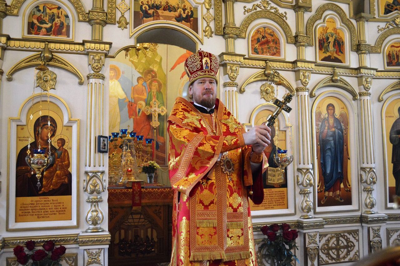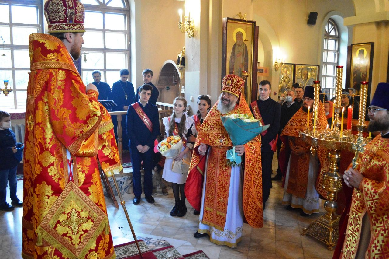 В завершение богослужения настоятель храма от имени клира и прихожан поблагодарил владыку за архипастырский визит и преподнес букет цветов.