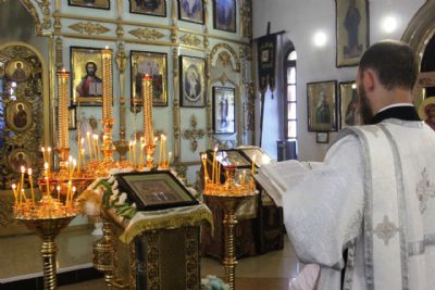 Богослужебные песнопения исполнил хор Успенского храма под управлением регента Ксении Спрыгиной.