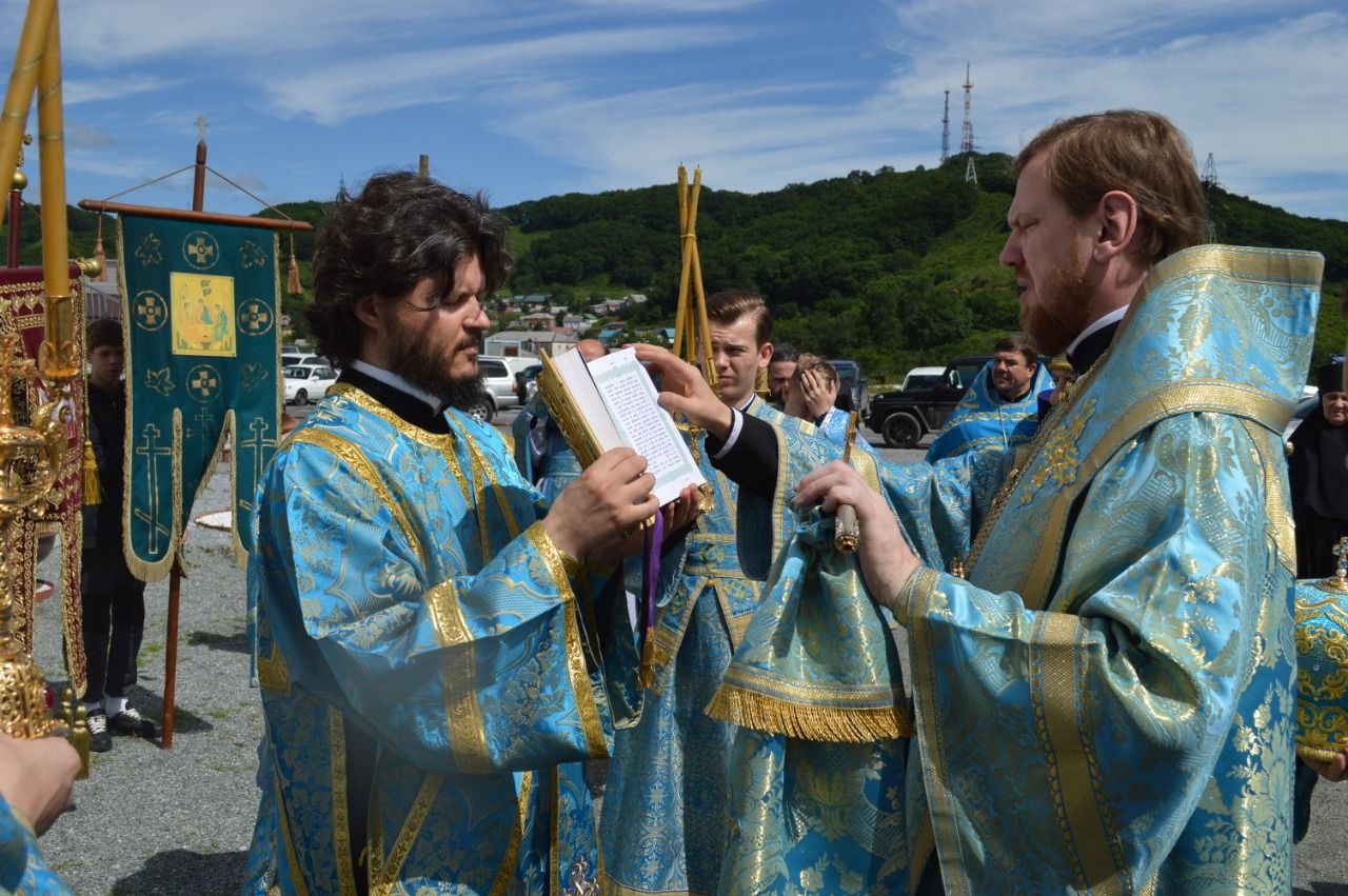 Архипастырям сослужили благочинный II Владивостокского благочиния Владивостокской епархии иеромонах Иоанн (Костин), секретарь Находкинской епархии протоиерей Александр Коваленко; благочинный Центрального округа Находкинской епархии, настоятель храма Живоначальной Троицы п. Врангель протоиерей Александр Жолобов; благочинный Западного благочиния Находкинской епархии иерей Роман Капитанюк; настоятель храма Сретения Господня г. Партизанска иеромонах Силуан (Березовский); настоятель храма преподобного Серафима Саровского п. Лазо иеромонах Августин (Глазунов); клирики Казанского собора, настоятели храмов и духовенство Находкинской епархии.
