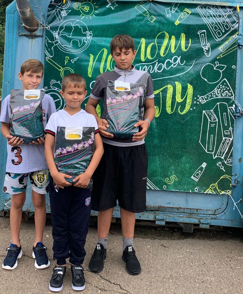 Так же в этот день состоялась акция «Помоги собраться в школу», где ребятам были розданы комплекты с различными необходимыми школьнику принадлежностями. Всего было сформировано 128 комплектов, которые были розданы в 12 селах района, из них семеро первоклассников получили портфели. Сладким дополнением к учебным принадлежностям стал сок, по 6 коробочек каждому предоставленных центром продовольствия «Русь».