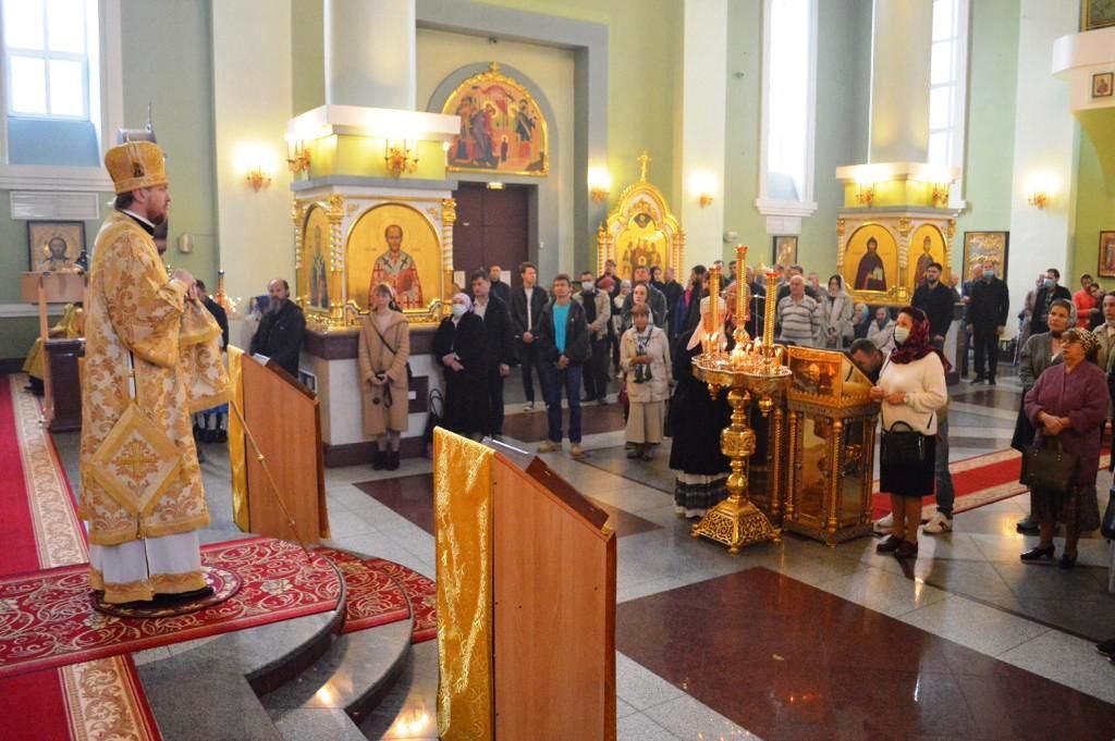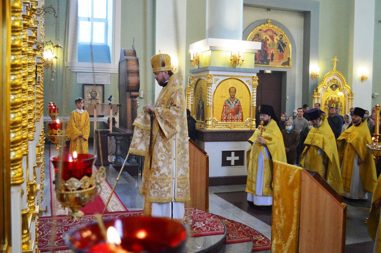Владивосток. 11 октября 2020 года, в Неделю 18-ю по Пятидесятнице и день памяти преподобных схимонаха Кирилла и схимонахини Марии, родителей преподобного Сергия Радонежского, митрополит Владивостокский и Приморский Владимир совершил Божественную литургию в Покровском кафедральном соборе.