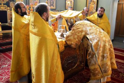 На сугубой ектении были вознесены молитвенные прошения в связи с угрозой распространения коронавирусной инфекции. После сугубой ектении глава Приморской митрополии вознес молитвы ко Господу о завершении строительства Спасо-Преображенского кафедрального собора г. Владивостока и молитву во время распространения вредоносного поветрия чтомую.