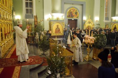 В праздник Рождества Христова митрополит Владимир совершил Божественную литургию в Покровском соборе