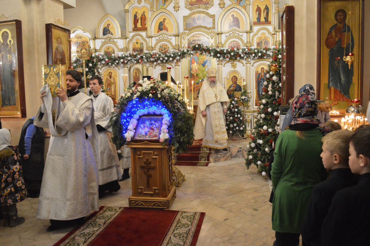 По отпусте литургии было совершено славление Господа Бога и Спаса нашего Иисуса Христа в честь праздника Его Рождества.