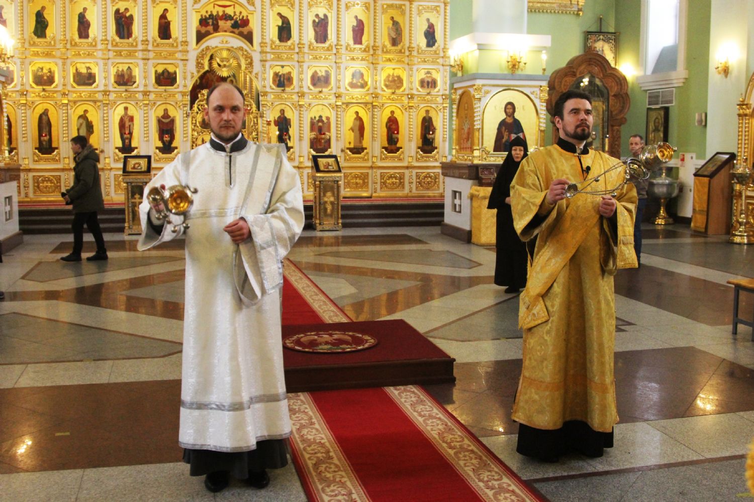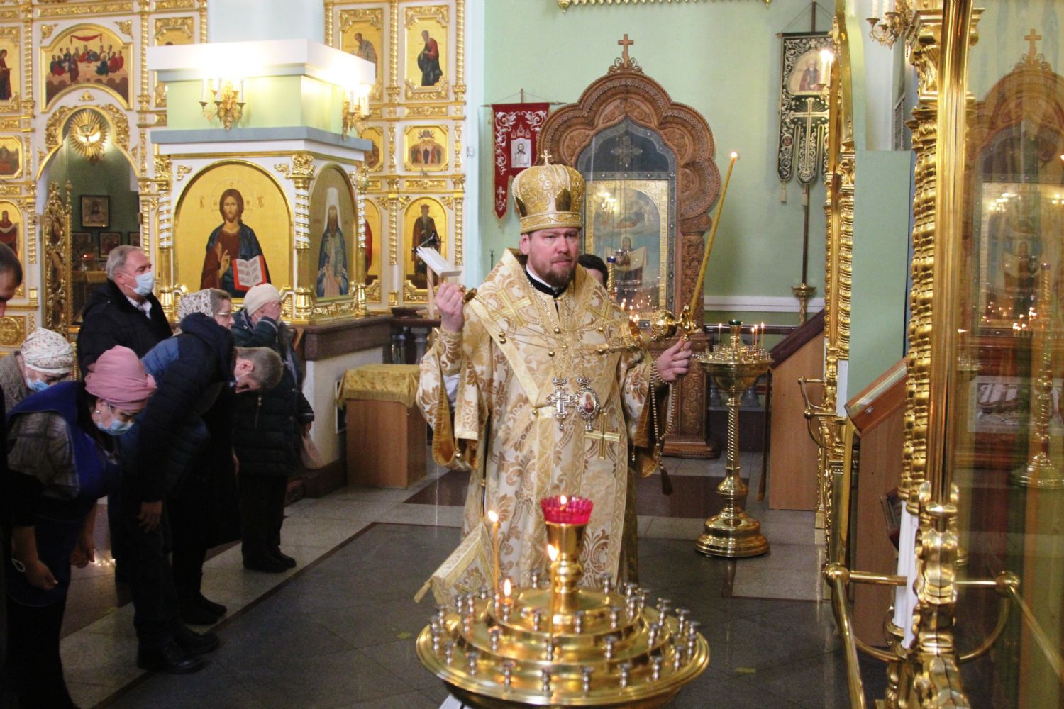 Его Высокопреосвященству сослужили: исполняющий обязанности ключаря Покровского собора иерей Владимир Плотников, игумен Антоний (Каменчук), протоиерей Игорь Шевчук, иерей Максим Точуков.