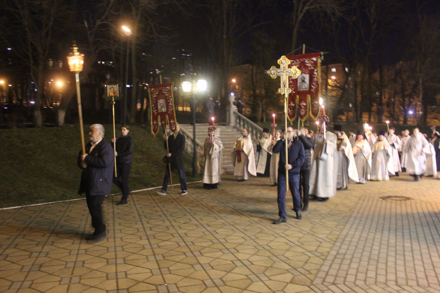В праздник Светлого Христова Воскресения глава Приморской митрополии возглавил торжественное богослужение в Покровском соборе