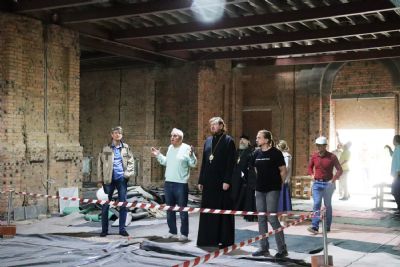 После совещания митрополит Владимир в сопровождении представителей подрядных организаций осмотрел строительную площадку.