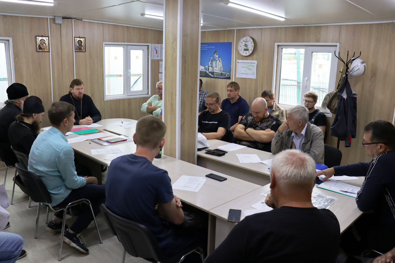 Владивосток. 26 августа 2021 года митрополит Владивостокский и Приморский Владимир возглавил очередное рабочее совещание на строительной площадке Спасо-Преображенского кафедрального собора.