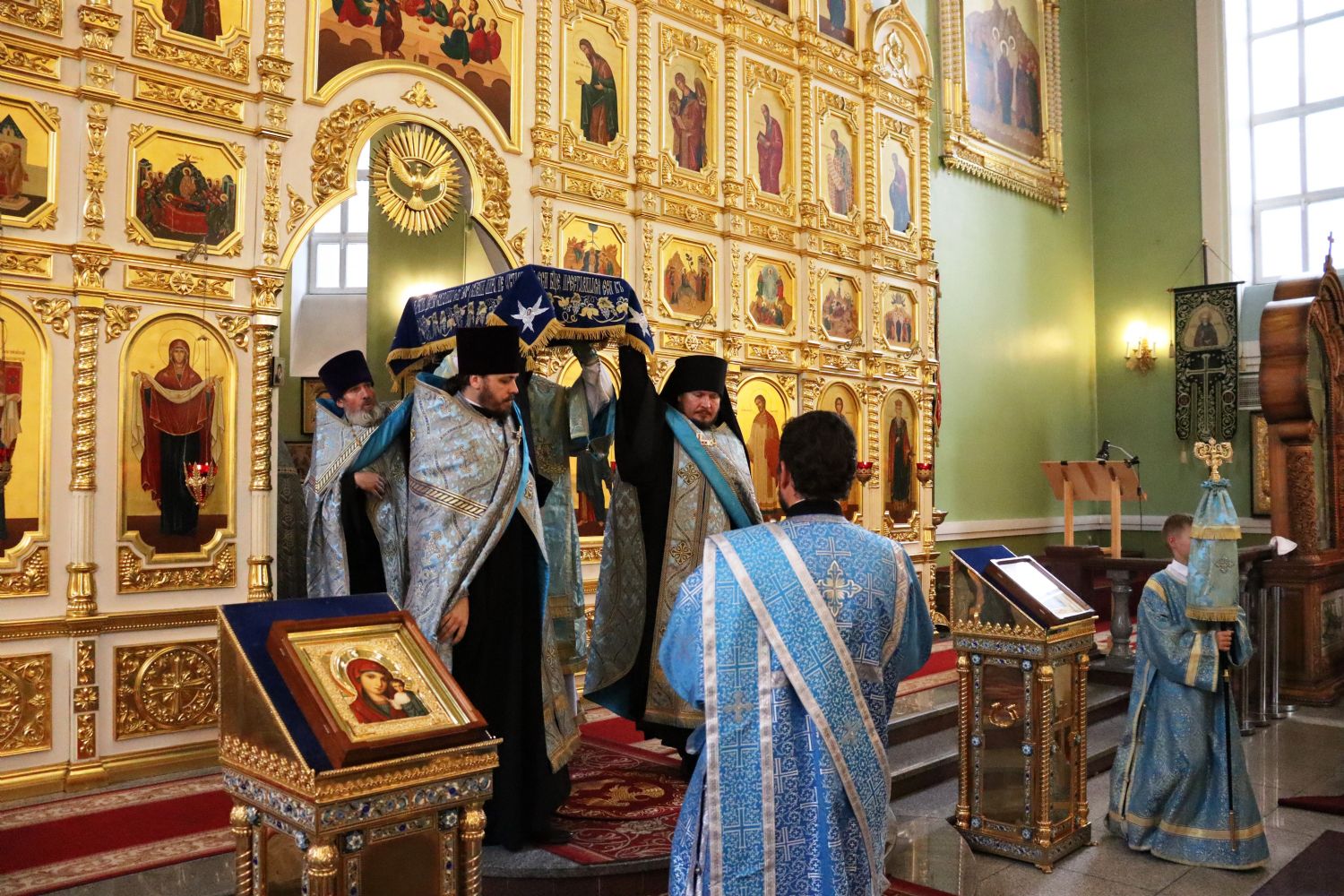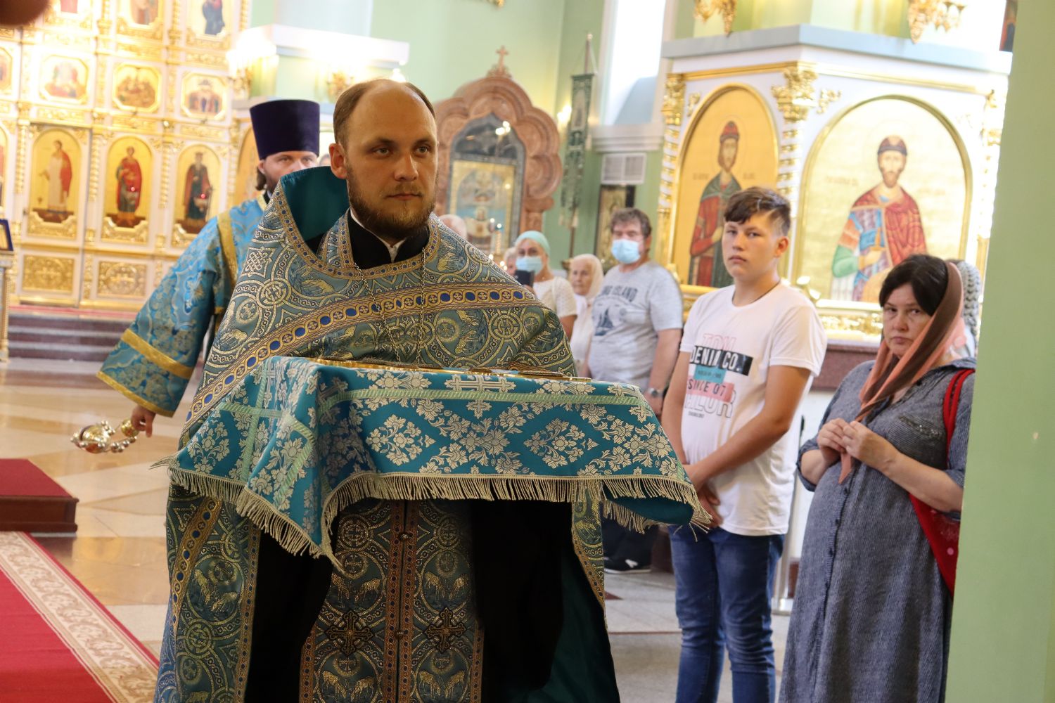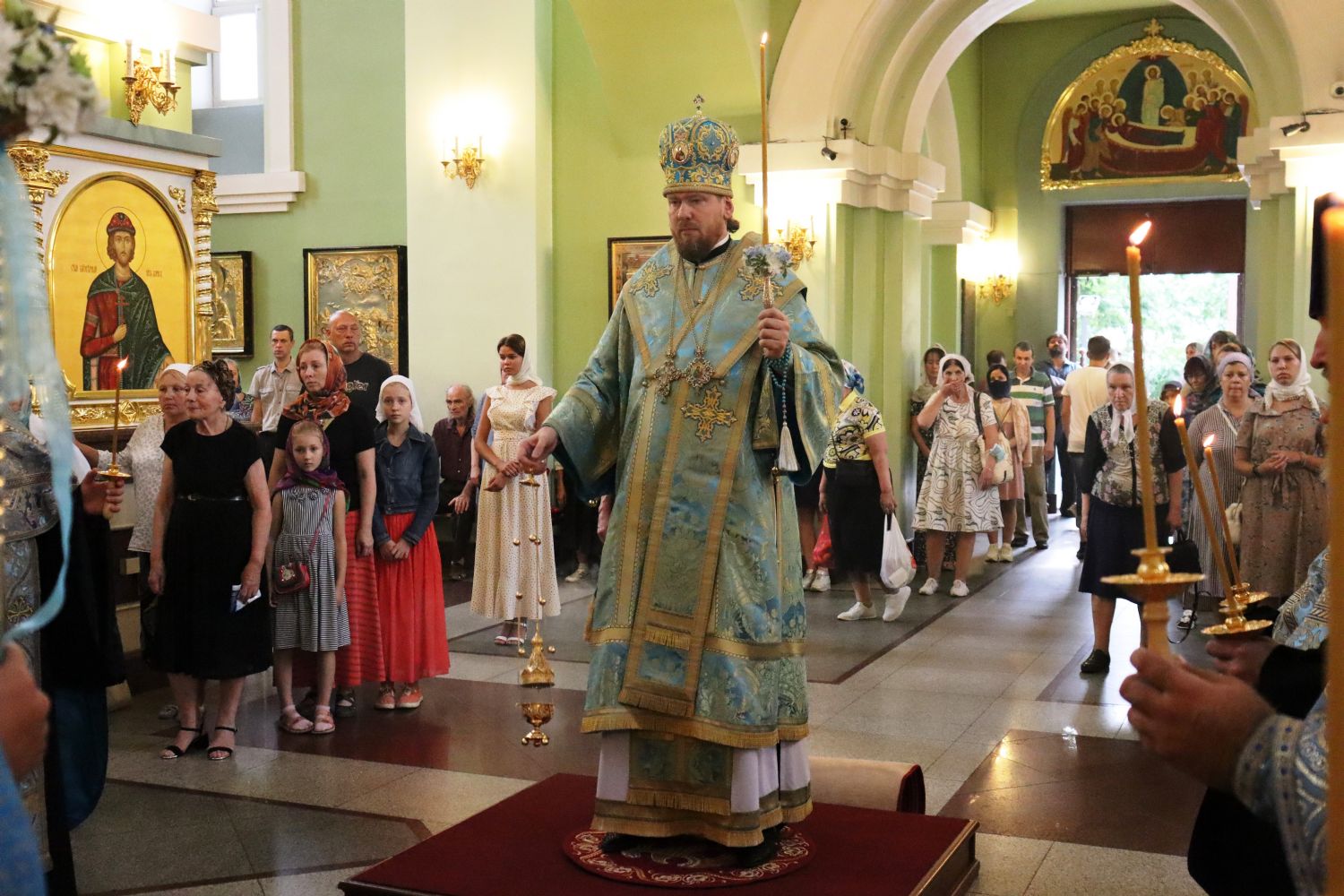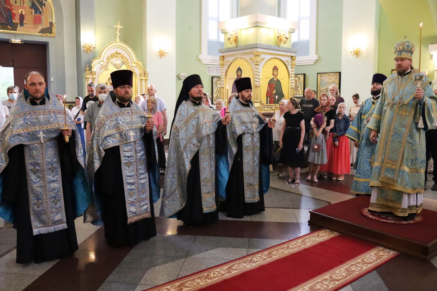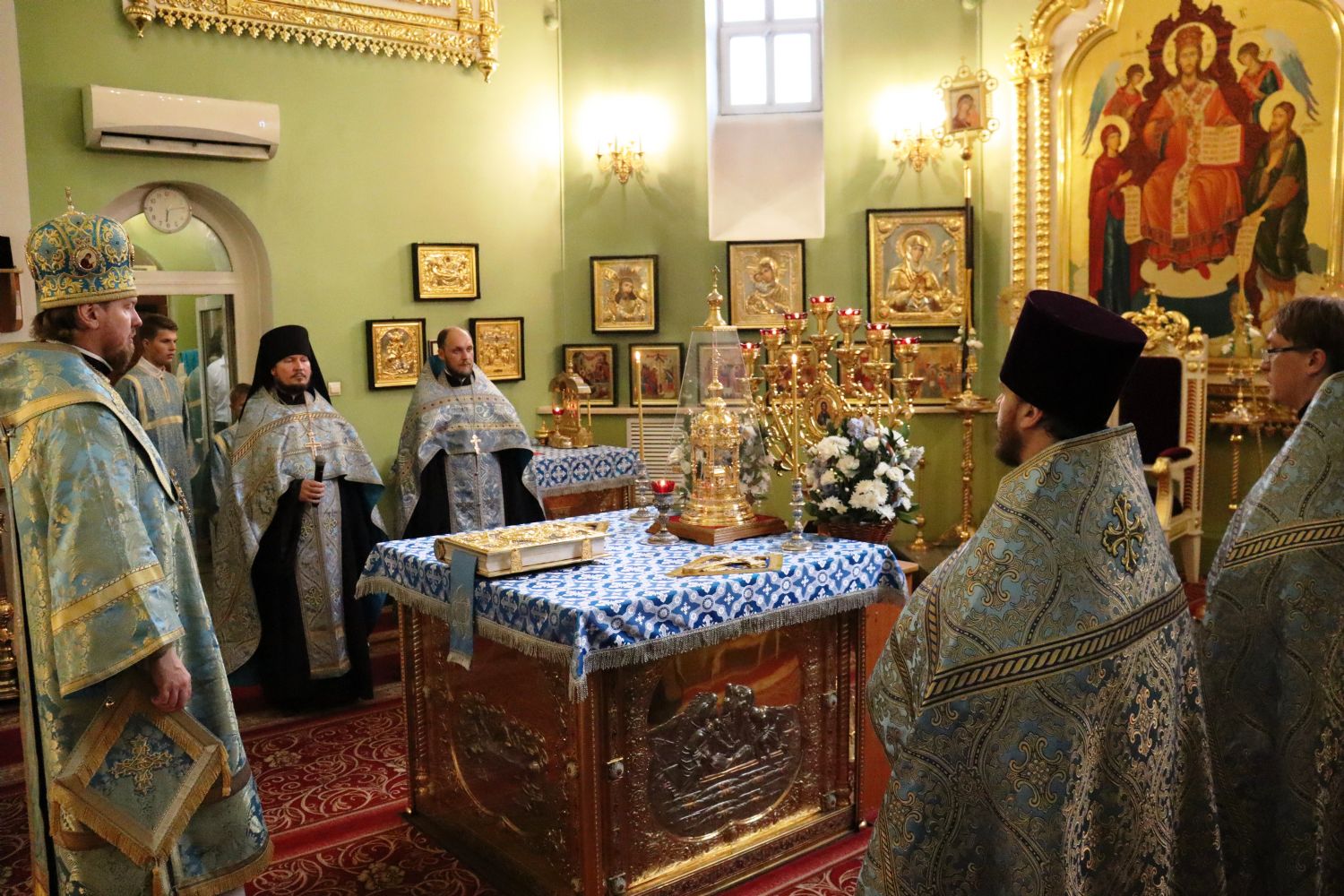 Его Высокопреосвященству сослужили ключарь собора иерей Владимир Плотников, игумен Антоний (Каменчук), игумен Феодорит (Долгов), протоиерей Игорь Шевчук, иерей Максим Точуков, иерей Олег Селезнев, иерей Дионисий Ищенко.