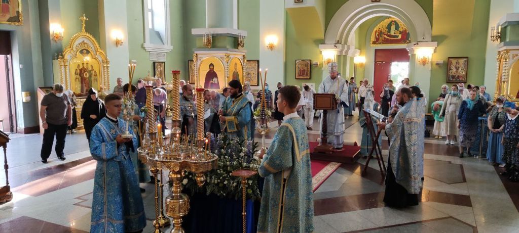 Владивосток. Вечером 29 августа 2021 года в соборе Покрова Божией Матери митрополит Владивостокский и Приморский Владимир совершил утреню с чином Погребения Пресвятой Богородицы.