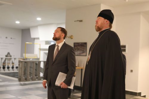 Архипастырь провел для И.В. Баринова экскурсию по Спасо-Преображенскому собору и его стилобатной части, где руководитель Федерального агентства по делам национальностей ознакомился с экспозицией музея Приморской митрополии.