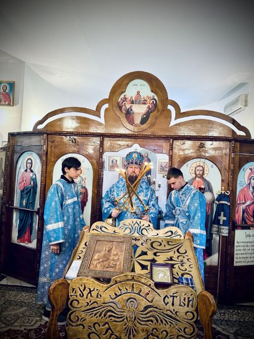 Республика Таджикистан, Душанбе. 4 ноября 2024 года, в день празднования Казанской иконы Божией Матери митрополит Ташкентский и Узбекистанский Викентий, глава Среднеазиатского митрополичьего округа в сослужении епископа Душанбинского и Таджикистанского Феодосия и епископа Владивостокского и Приморского Павла, совершил Божественную литургию в храме Иверской иконы Божией Матери при 201-ой базе Вооруженных сил Российской Федерации в Республике Таджикистан.