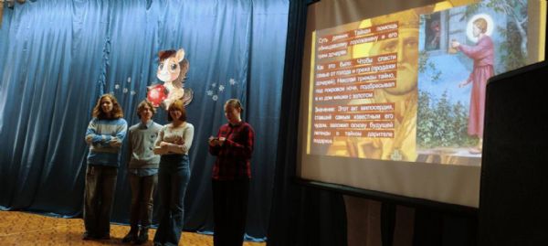 С помощью презентации отец Илия и студенты-теологии рассказали детям о житии Николая Угодника, его чудесах и добрых делах. Затем они провели викторину, которая проверила знания ребят о празднике Рождества Христова и деяниях святителя Николая.