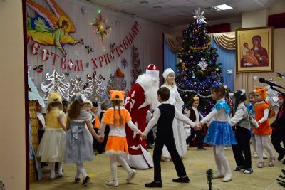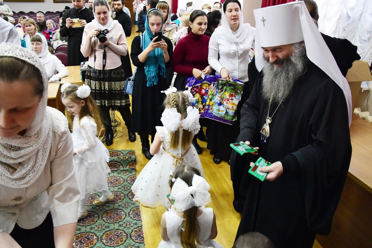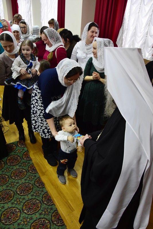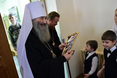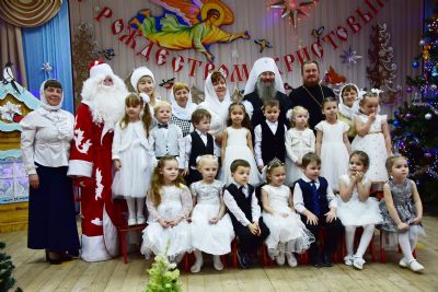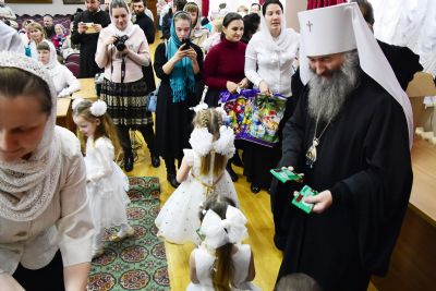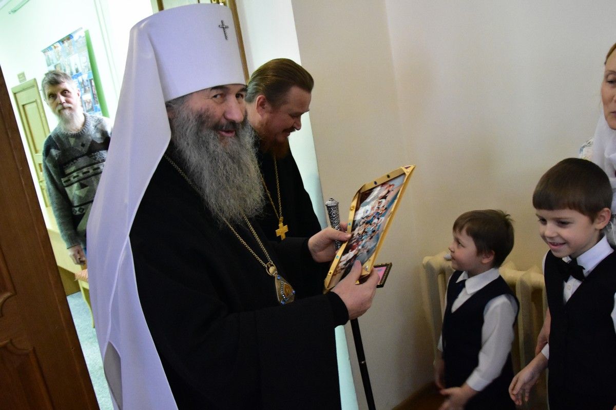 Владыка поздравил детей и родителей с праздником Рождества Христова, дал архипастырские наставления и подарил сладкие подарки.