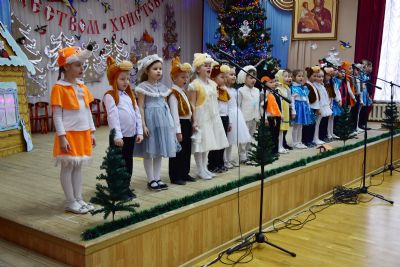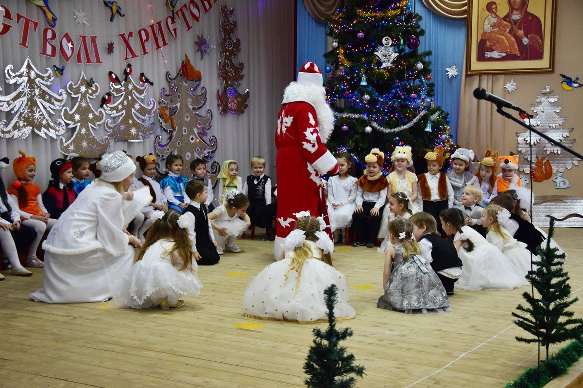 Дети младшей и старшей групп исполнили рождественские песни, прочитали стихи и показали сценку.