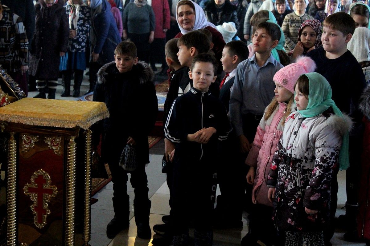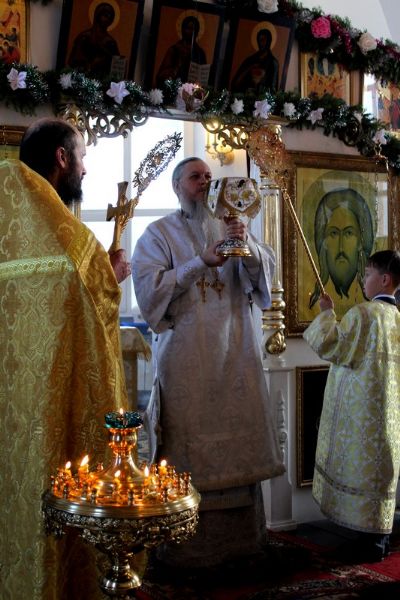 Владыке сослужили благочинный Северного церковного округа настоятель храма протоиерей Владимир Власов, настоятель храма Покрова Пресвятой Богородицы с. Марисола протоиерей Сергий Сильдушкин, настоятель храма святителя Николая Чудотворца п. Мариец иерей Николай Аникин, клирик Никольского кафедрального собора г. Волжска диакон Иоанн Захаров.