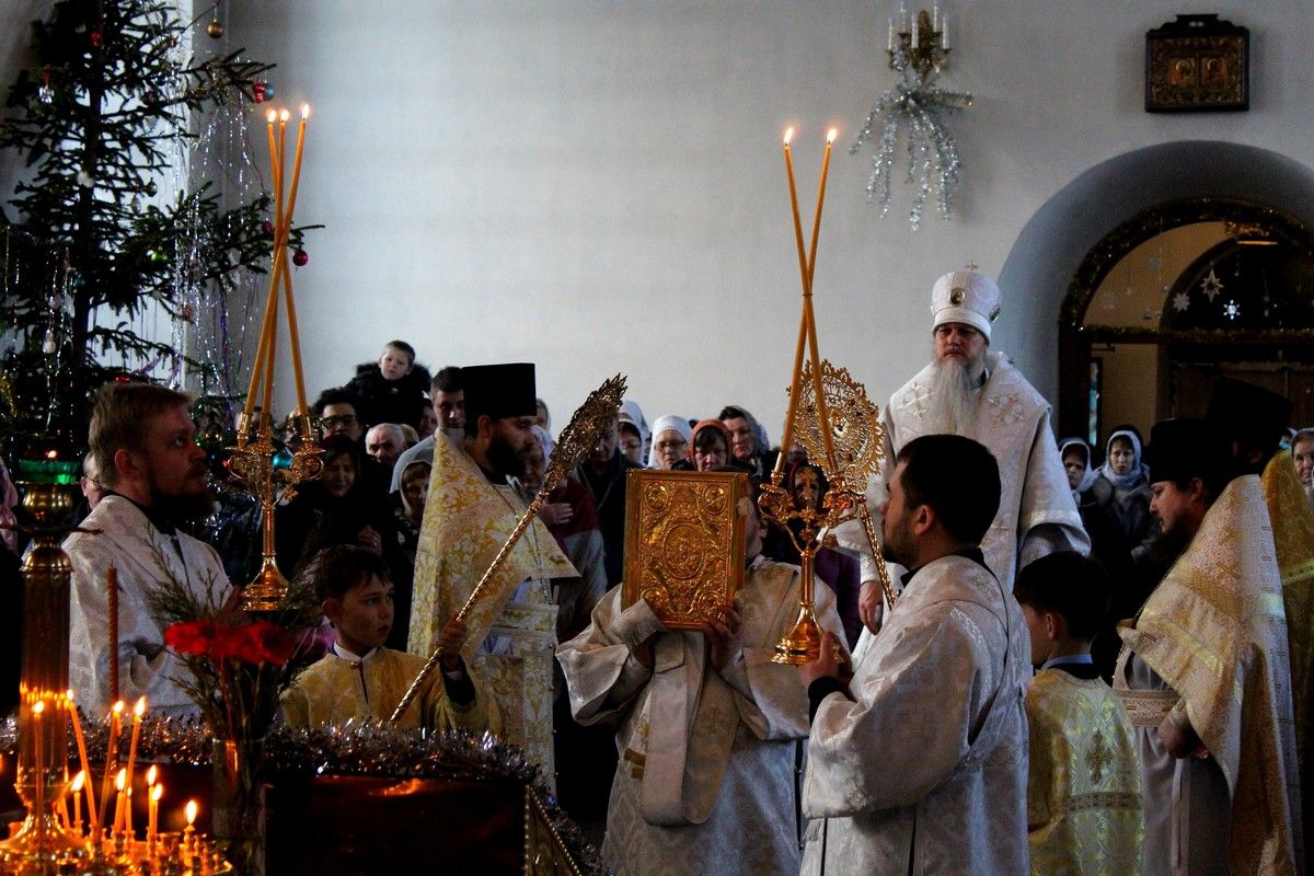 В проповеди архипастырь отметил, что Господь по любви Своей к роду человеческому принял на Себя человеческую плоть, став во всем подобен нам, кроме греха. «Он соединил в себе божественную и человеческую природу чтобы, добровольно воплотившись на земле, проповедуя Святое Евангелие, сотворяя множество чудес, и в завершение Своего подвига добровольно дав распять Себя на Кресте, Господь хотел подарить человеку возможность возвращения в рай, туда откуда когда-то вышли первые люди, наши прародители Адам и Ева после грехопадения. Рай был закрыт до того времени, пока Господь наш Иисус Христос не принес на Кресте Свою удивительную жертву любви к человеку. И вот Рождество Христово являет собой начало нашего спасения. Господь явился в мир, чтобы проповедовать и добровольно пострадать за всех нас с вами. Поэтому праздник Рождества Христова касается каждого из нас. И теперь кто принимает Святое Крещение, миропомазание, участвует в Таинствах Православной Церкви и стремится всем сердцем быть с Богом, этот человек имеем надежду ради Искупительной Жертвы Господа Иисуса Христа вернуться в то Отечество, ради которого Бог и сотворил его, желая поделиться с ним вечным блаженством», — сказал владыка.