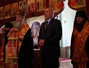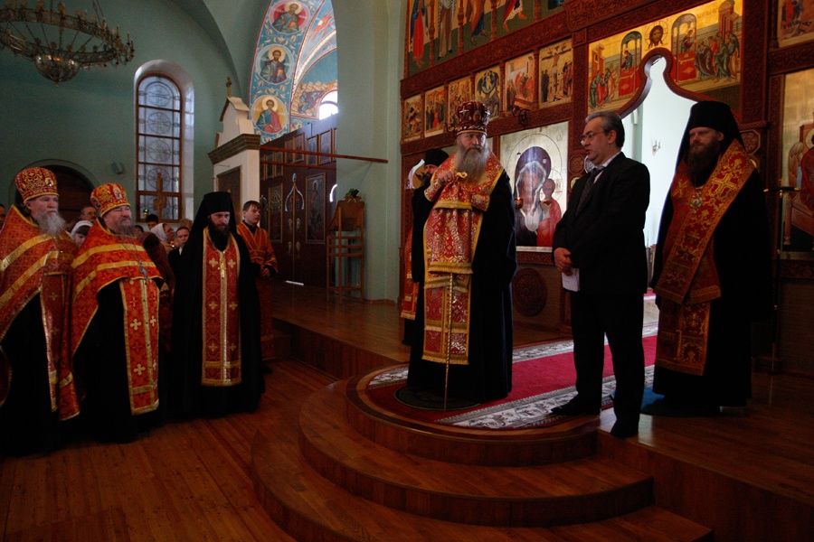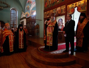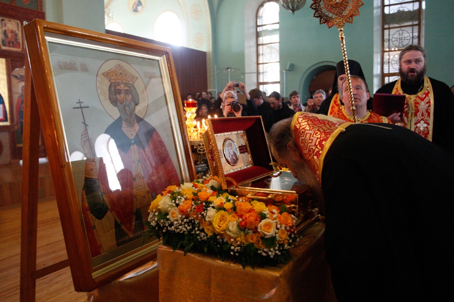 В Троицком сквере и в Свято-Троице-Владимирском соборе Митрополитом Тихоном, в сослужении епископата Митрополии и духовенства, был отслужен молебен перед ковчегом с частицей мощей святого равноапостольного великого князя Владимира, по окончании которого к духовенству и прихожанам обратился Владыка Тихон, В.И.Козодой и А.А.Корнилов.