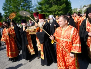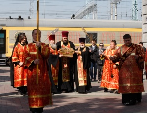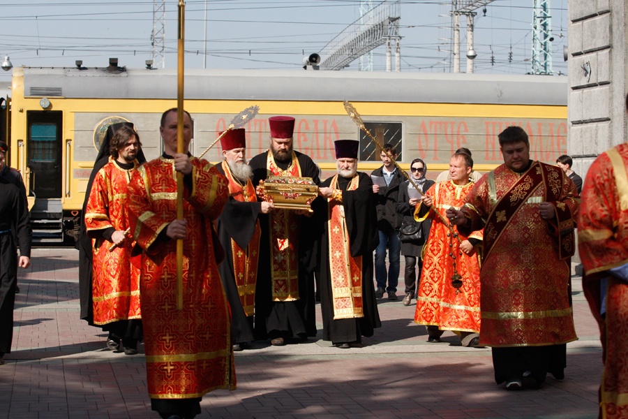 Со станции «Новосибирск-Главный» Крестный ход с частицей мощей святого равноапостольного великого князя Владимира отправился к Троицкому скверу у Свято-Троице-Владимирского собора города Новосибирска, где его встречали Высокопреосвященнейший Тихон, Митрополит Новосибирский и Бердский, Преосвященный Лука, Епископ Искитимский и Черепановский, Преосвященный Феодосий, Епископ Каинский и Барабинский, священнослужители Новосибирской, Искитимской, Карасукской и Каинской епархий, входящих в Новосибирскую Митрополию Русской Православной Церкви.