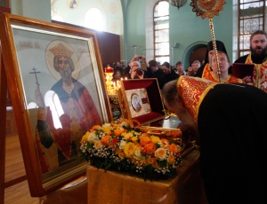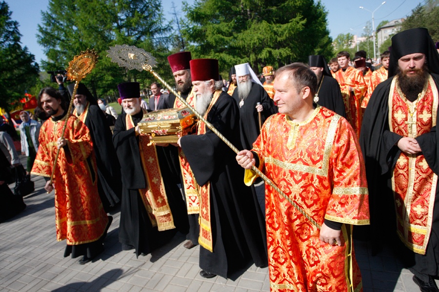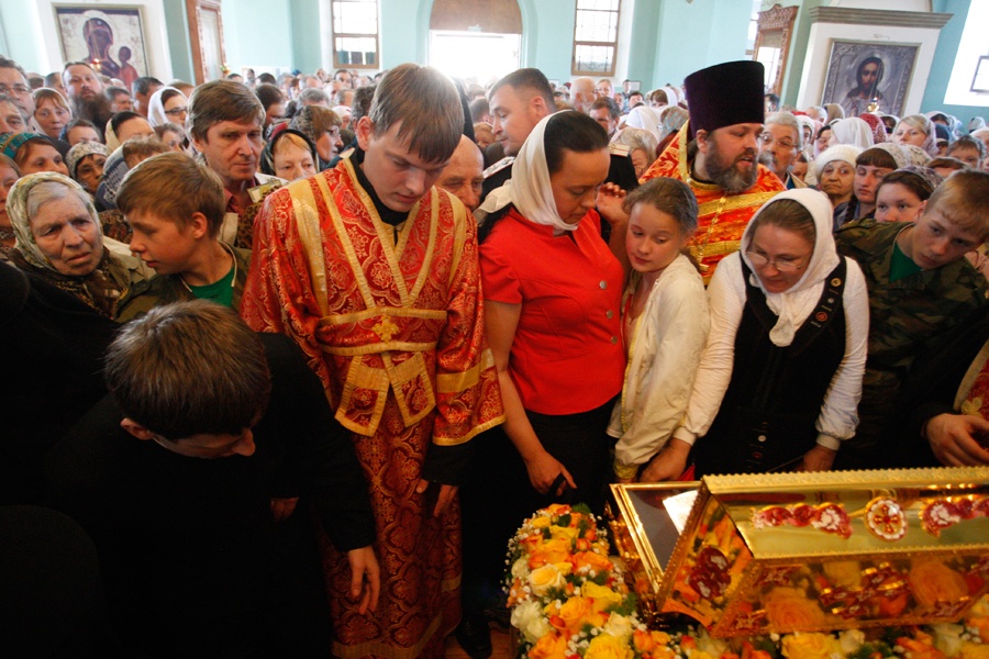 8 июня 2013 года, в Свято-Троице-Владимирском соборе, в 08.00., будет отслужен молебен перед ковчегом с мощами, после чего он будет перенесен в Вознесенский Кафедральный собор города Новосибирска, где с 09.00. до 11.00., будет отслужена Божественная Литургия, по окончании которой в Воскресной школе собора состоится концерт с участием творческих фольклорных коллективов национальных центров русского, украинского, белорусского и грузинского.