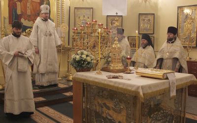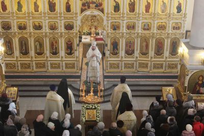 Богослужебные песнопения исполнил Архиерейский хор Покровского кафедрального собора под управлением регента Л.И. Макаренко.