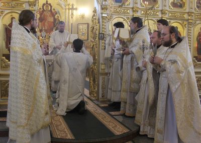 Его Высокопреосвященству сослужили благочинный I округа Владивостокской епархии протоиерей Димитрий Федорин; ключарь Покровского кафедрального собора протоиерей Александр Талько; духовенство кафедрального храма.