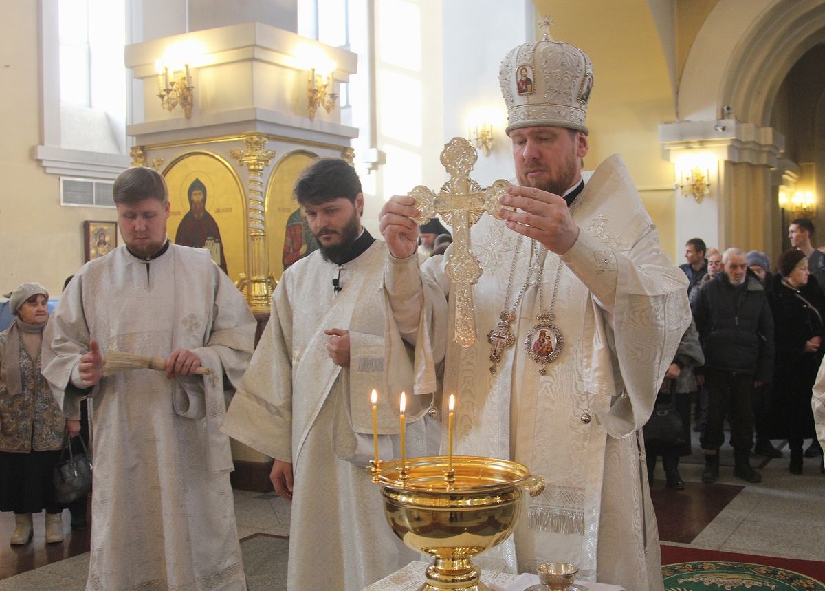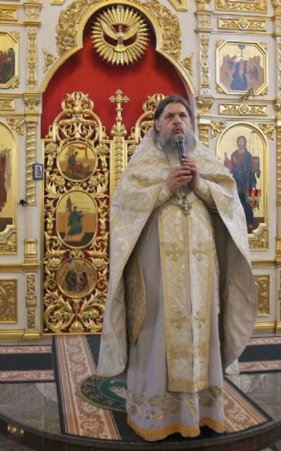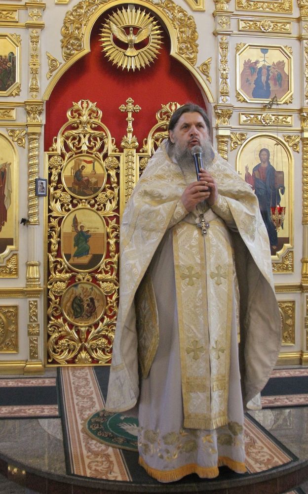 Проповедь перед причастием произнес ключарь Покровского кафедрального собора протоиерей Александр Талько.