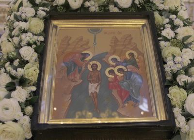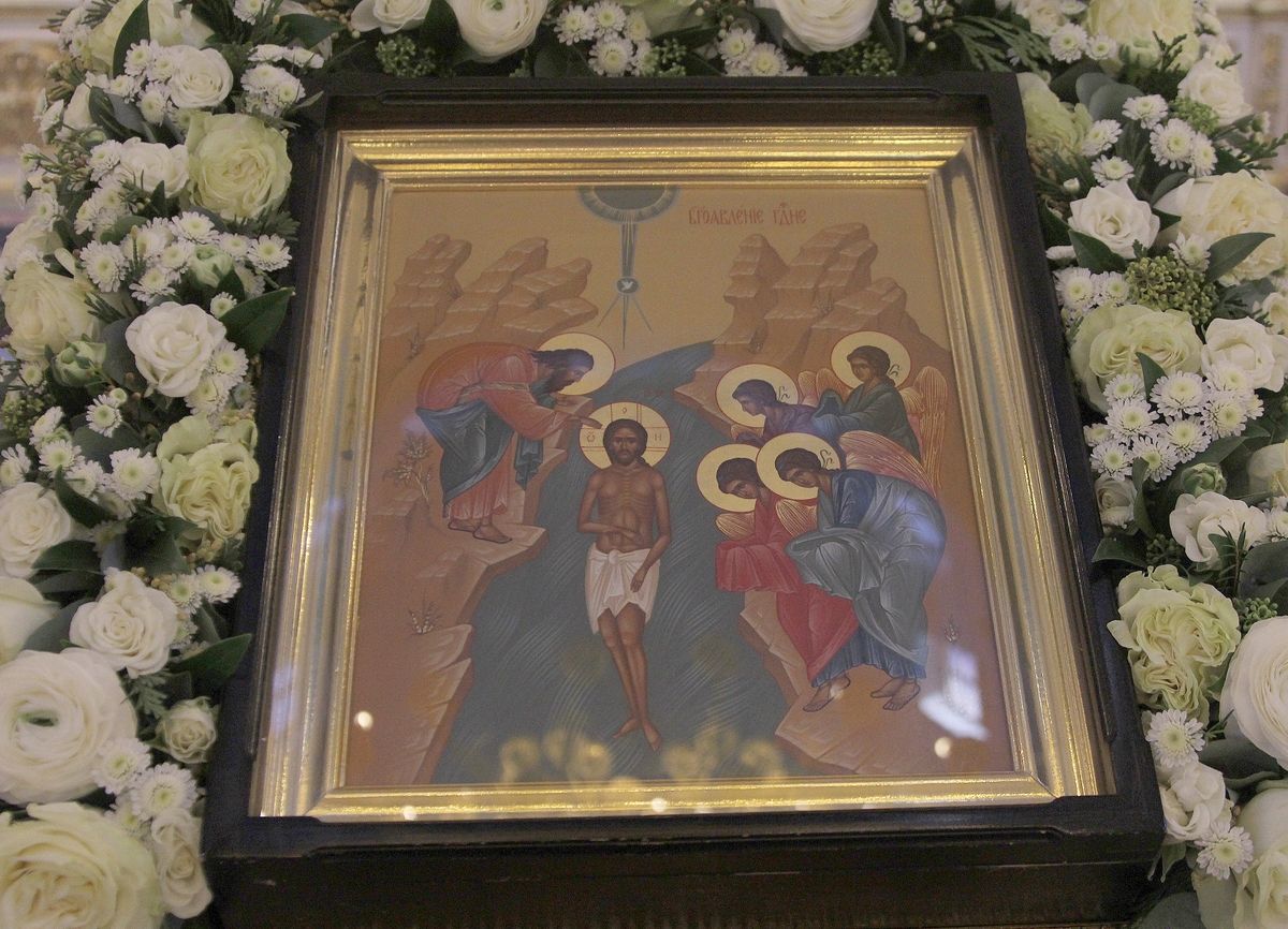 По окончании Литургии митрополит Владимир с сослужащим ему духовенством совершил чин великого освящения воды. После освящения владыка обратился к прихожанам с проповедью, посвященной духовному значению праздника, отметив, что святая вода, освященная в храме, свидетельствует о действии Божией благодати в этом мире.